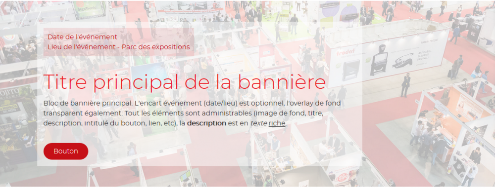Il a été pensé en premier lieu pour vous permettre de faire le lien vers votre espace exposant mais il vous est possible de renseigner le lien et l'intitulé que vous désirez.