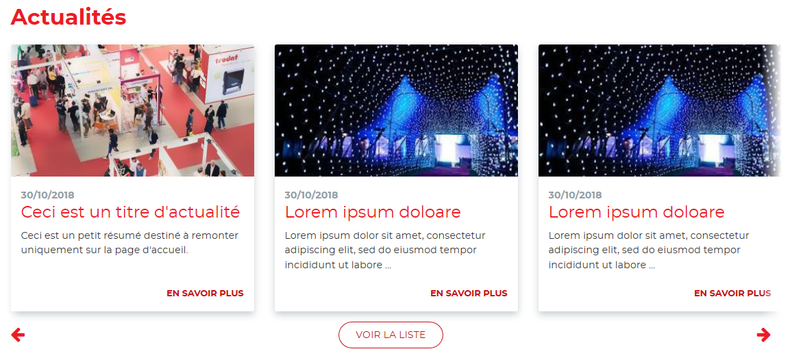 Ce bloc prévoit également l'affichage d'un bouton vers la liste de toutes les actualités.