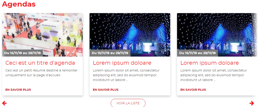 Au delà de 3 événements, vous pouvez défiler vers les actualités plus lointaine vers la droite, et revenir vers les plus récentes vers la gauche, soit via les flèches de navigation, soit en drag & drop.