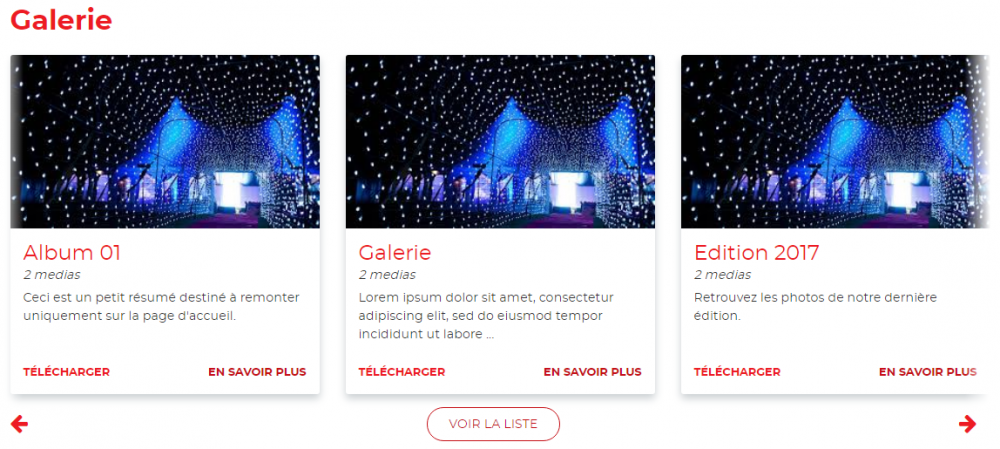 Ce bloc prévoit également l'affichage d'un bouton vers la galerie avec tous les albums.